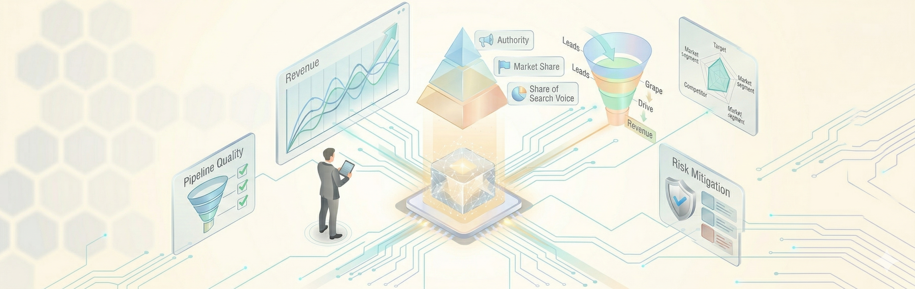Share of voice metrics earn C-suite attention only when they connect to commercial outcomes. The following three linkages are where GEO performance translates into language the CEO and RevOps will recognize.
